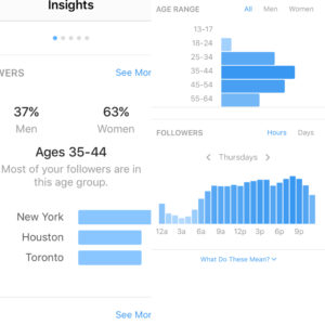 If you have a business account, you can see data on; the impressions your posts got, what different times your images were seen, info and demographics of your followers, average time your followers are online, etc.