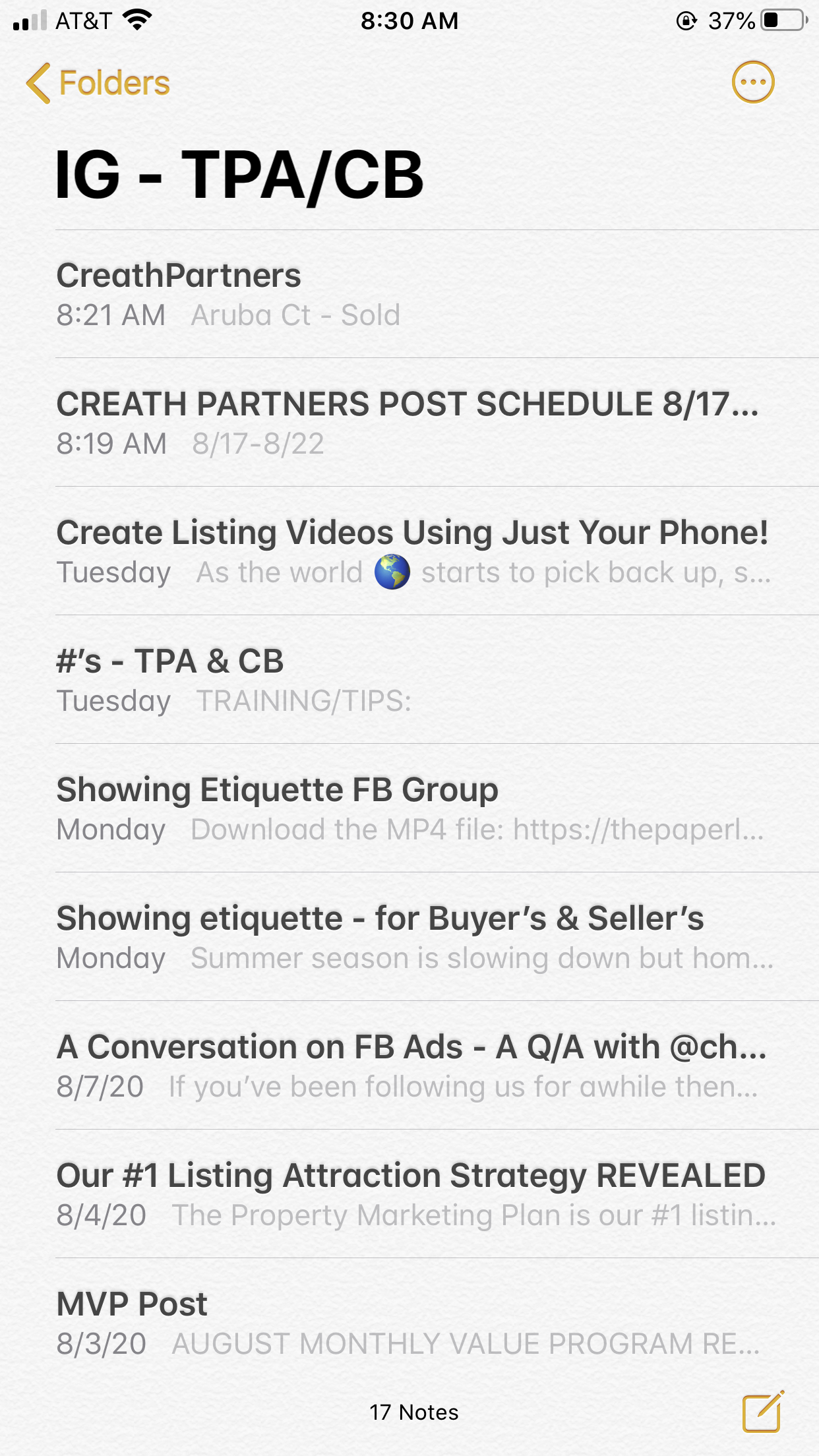 4. Create a notes sheet on your phone(or in your notebook if you carry one on you) for when ideas pop up. Most of my ideas for content come at random times... while I'm working out, at the grocery store, walking my dogs, etc. I've had more success creating content from those ideas than I have trying to schedule out time to brainstorm. (Although if that's what works for you then keep at it!)