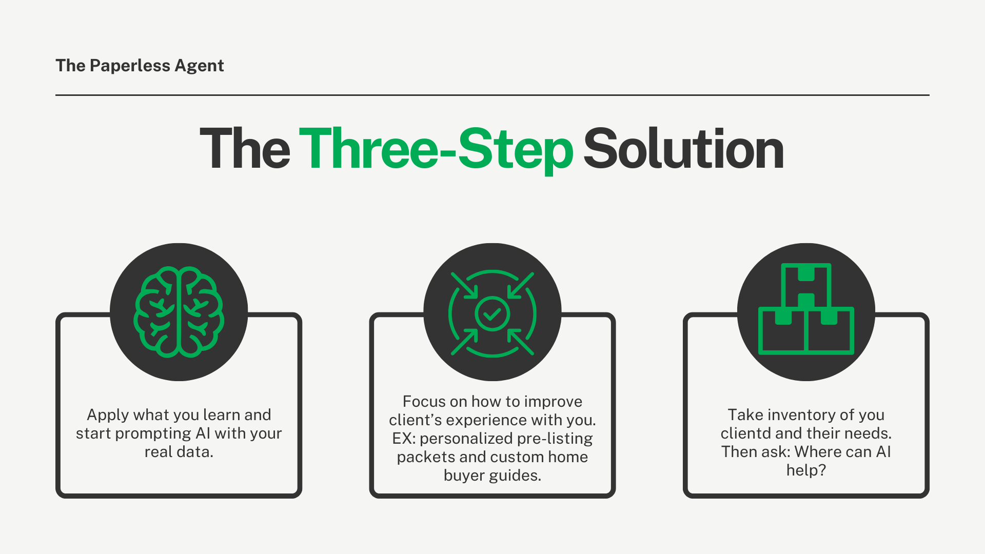 You can't just grab prompts and expect results. You need to apply what you learn. Go beyond writing listing descriptions and start using prompting with YOUR data and experience to create something unique. Explore tools beyond ChatGPT, including AI agents and automation platforms.