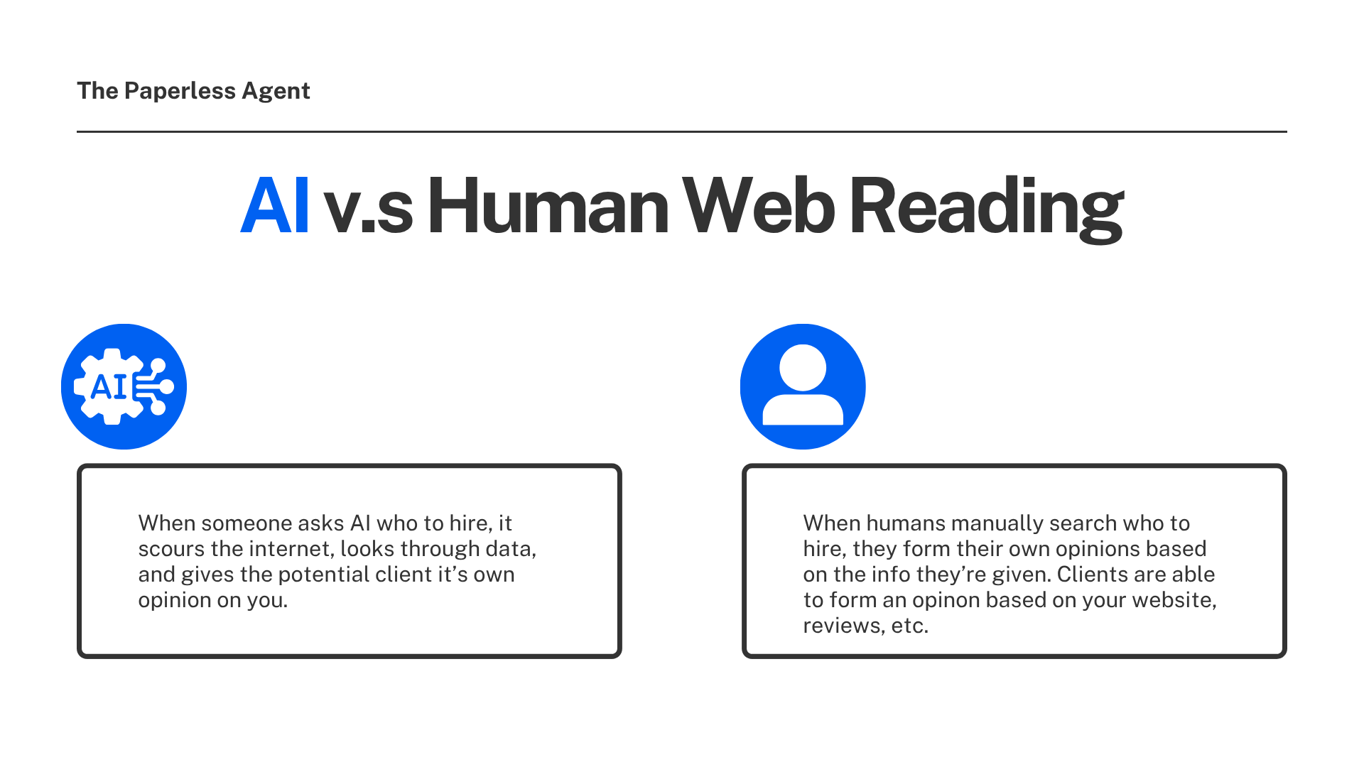 When a potential client opens ChatGPT and asks "who should I hire to sell my home in [your city]?" the AI doesn't ask around. It reads the internet. Specifically, it sends bots to crawl websites — yours included — and then synthesizes what it finds into a recommendation.